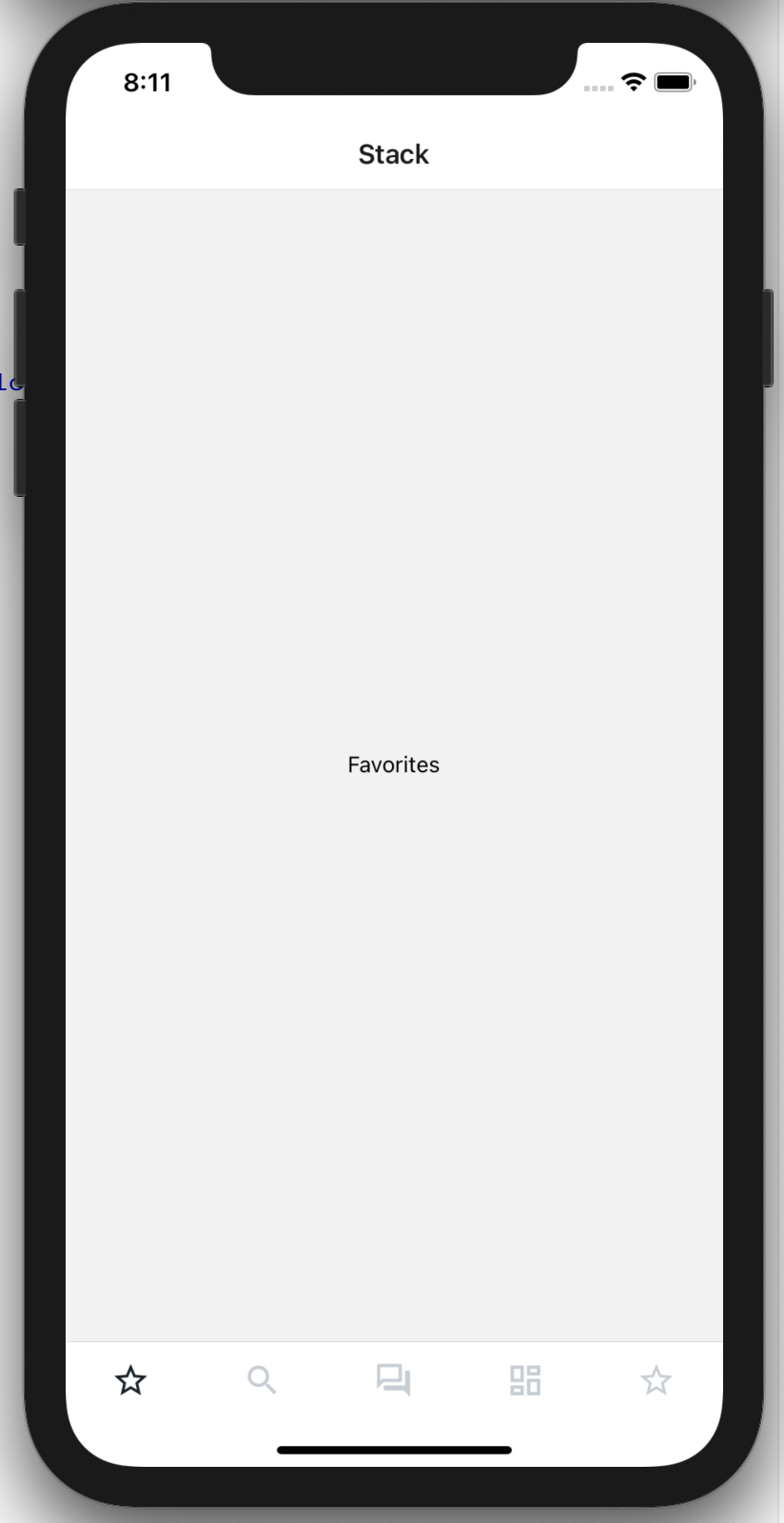 아까와는 다르게 FavoritesStackNavigator = ()=>() 식으로 스택을 리턴해준 객체를 각 탭의 컴포넌트로 할당하고 있다.