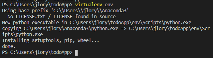 ~~~경로~~~(env)가 나오면 성공적으로 들어간 것이다.