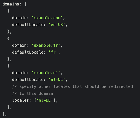 Next.js has built-in support for internationalized routing and language detection. Learn more here.