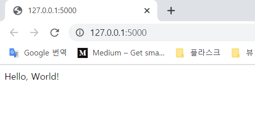 성공적으로 실행했으면 Running on http://127.0.0.1:5000/ 이렇게 뜬다~~