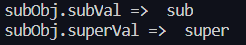 - 분명 subObj에 superVal를 선언하지 않았음에도 콘솔창에 다음과 같이 찍힌다.