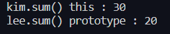 console.log('lee.sum()', lee.sum()); //없다면 클래스 내의 'sum'으로 정의된 메소드를 찾는다