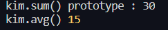 console.log('kim.sum()', kim.sum()); //kim이라는 객체가 sum이라는 객체를 가지고 있는지 우선 확인해보고